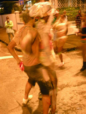 3canal’s J'ouvert began quietly and built up to a tame and orderly dawn fête mixed with paint and mud. No one left unscathed as a light war of colour factions pelted globs of paint into the air. Some masqueraders ran for cover and others surrendered peacefully tempered by a rhythm section and an army of willing drones who inseminate sweat on sweat by an all out ritual wine.